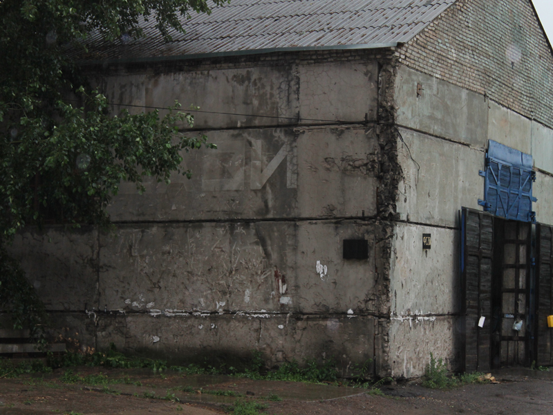 Сразу хотим отметить, что столь же яркий и полезный эффект от применения гидрофобизаторов будет на поверхности любого пористого строительного материала минерального происхождения – будь то бетон, кирпич, натуральный камень, декоративная штукатурка или тротуарная плитка. Этот опыт был проведен на стене склада неподалеку от офиса нашей компании. Расположение склада показано на фотоснимке ⇨