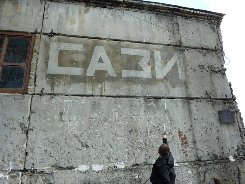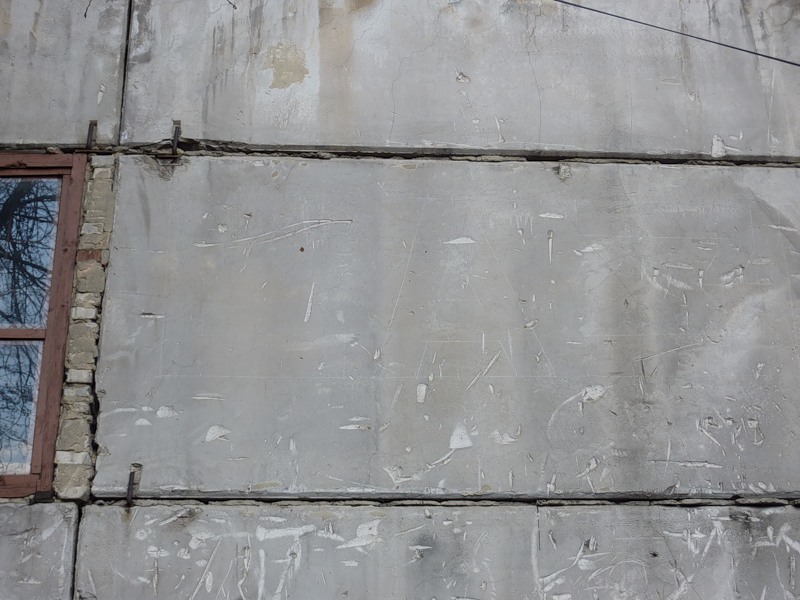 Здание представляет собой сооружение из бетонных панелей постройки примерно двадцатилетней давности. На внешней стене здания мы нанесли гидрофобизатором Типром К надпись, которая проявляется при смачивании стены водой ⇨